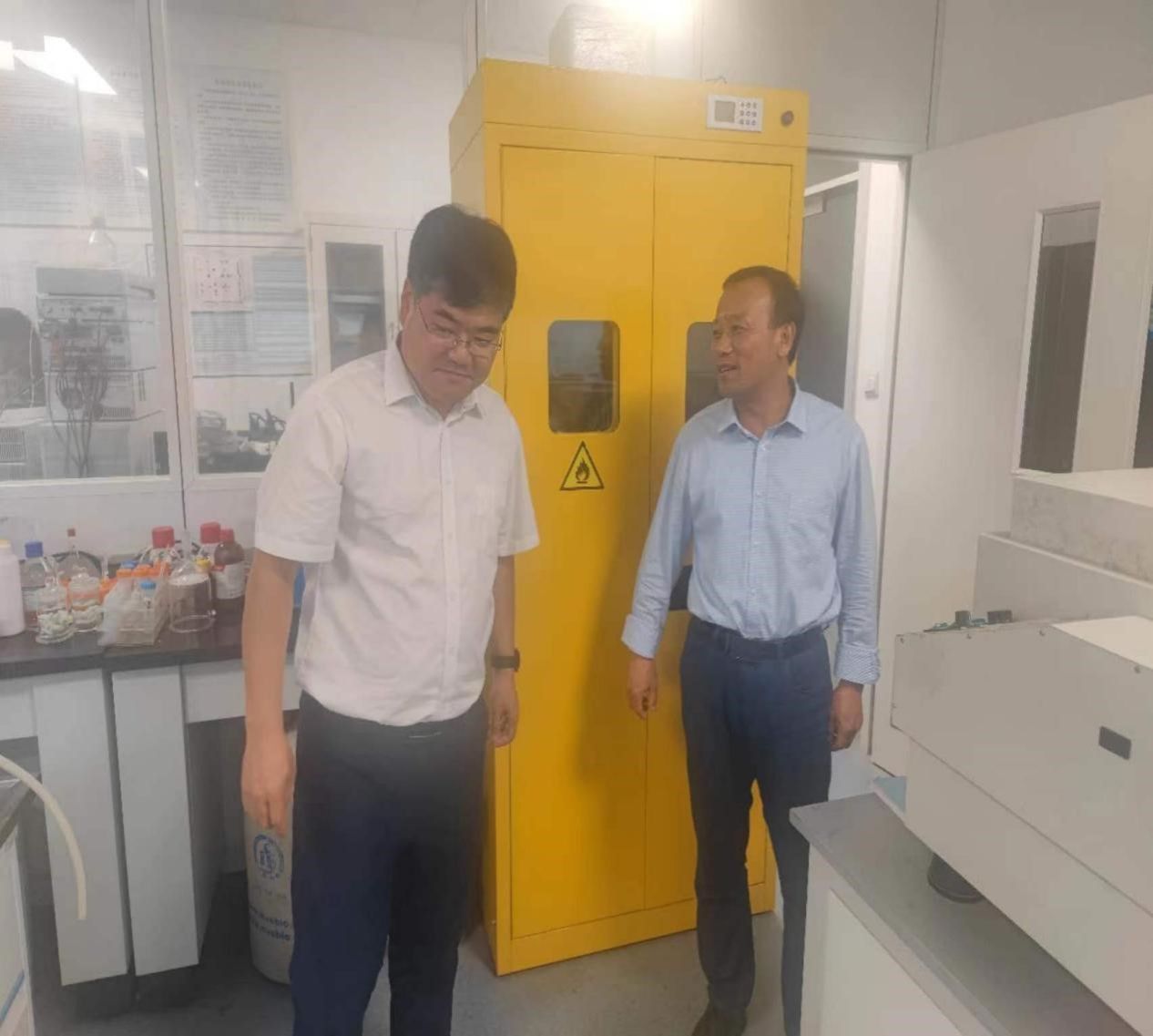 9月25日,VSport体育安全工作领导小组开展实验室安全检查工作。院(所)安全工作领导小组组长史仁玖,副组长汪海洋、牟艳玲带队对院(所)实验室安全隐患进行全面排查。