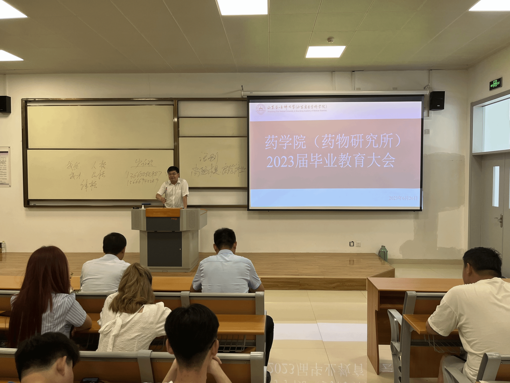 汪海洋指出,2023届毕业生作为章丘校区搬迁到主校区的最后一批本科生,他回顾了同学们入校时和在校期间的点点滴滴,勾起了同学们美好的回忆,他鼓励同学们要珍惜当下,继续保持初心,砥砺奋进,实现自己的人生价值。