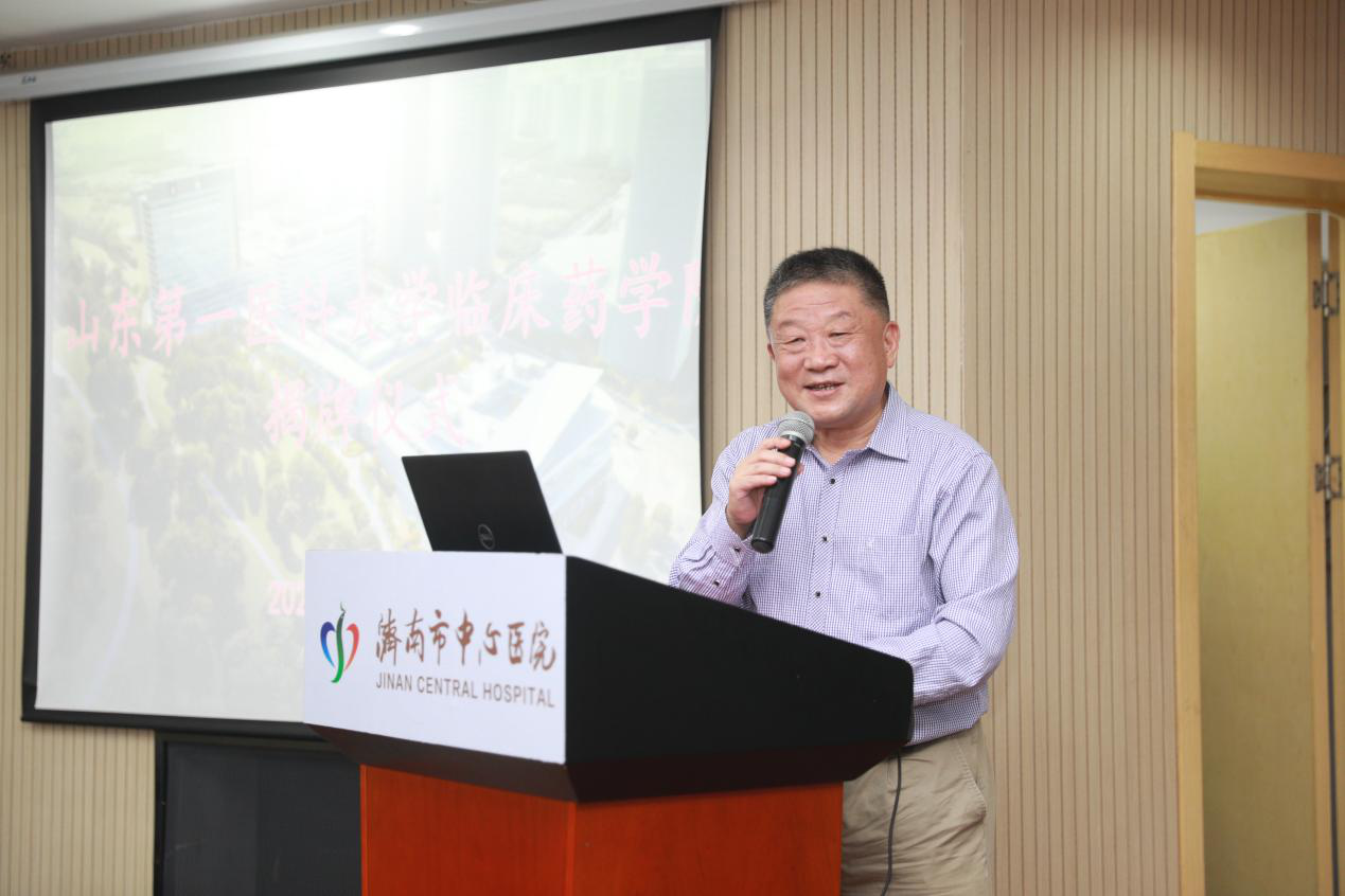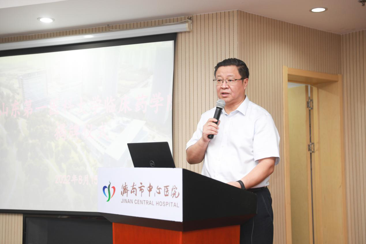 揭牌仪式上,VSport体育人事部主要负责同志宣读了《关于同意校(院)与附属中心医院(济南市中心医院)共建临床VSport体育的批复》文件。