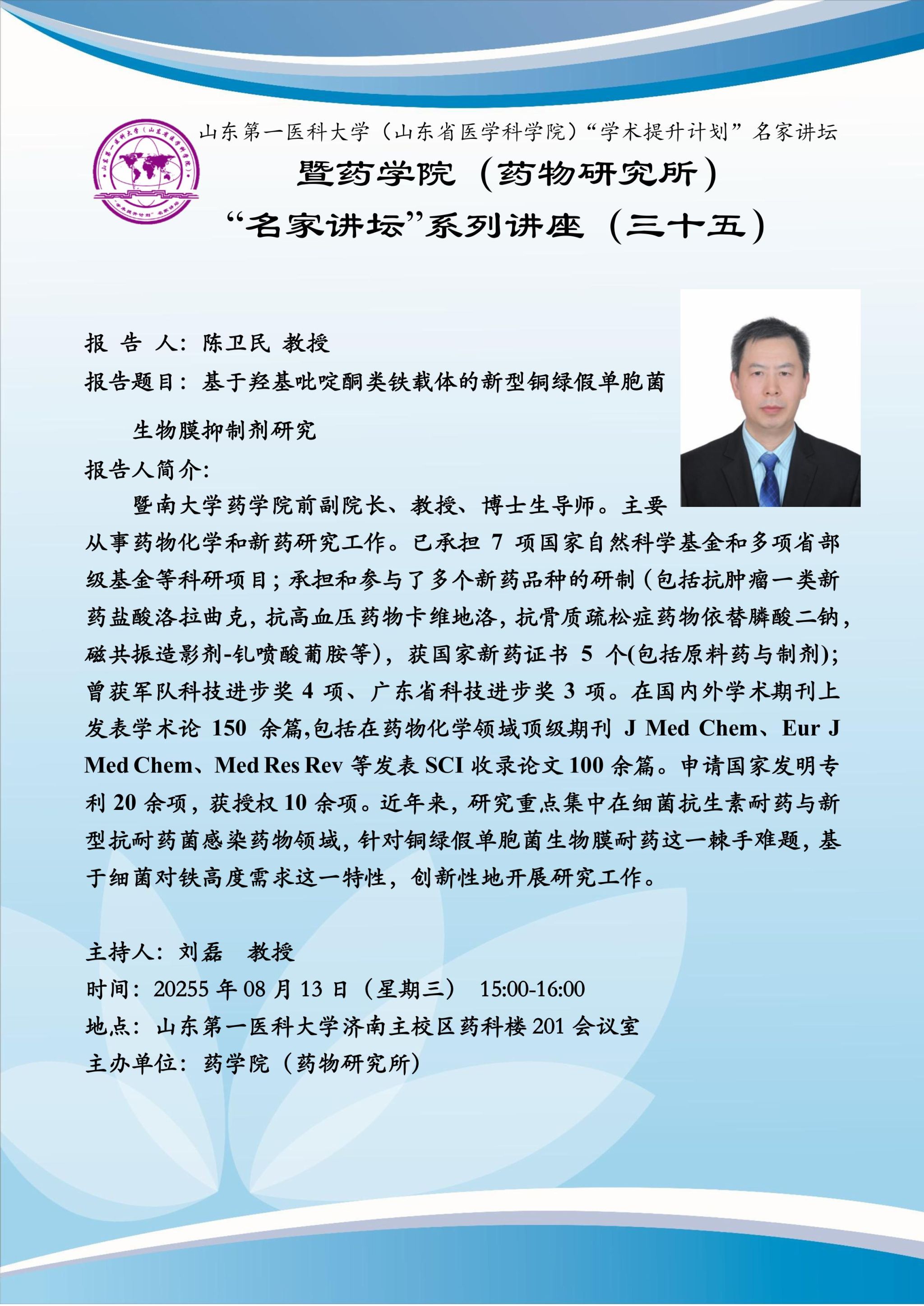 VSport体育“药学名家讲坛”系列讲座(三十五)