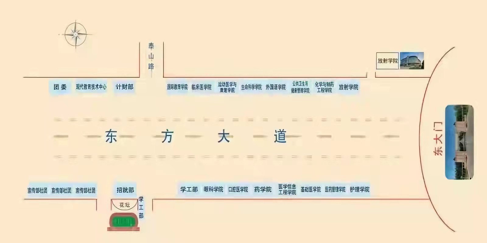 报到当天迎新志愿者们会为大家提供热情的帮助!下面是一张报到当天公司东方大道两侧迎新帐篷的分布图,给同学们作为参考。