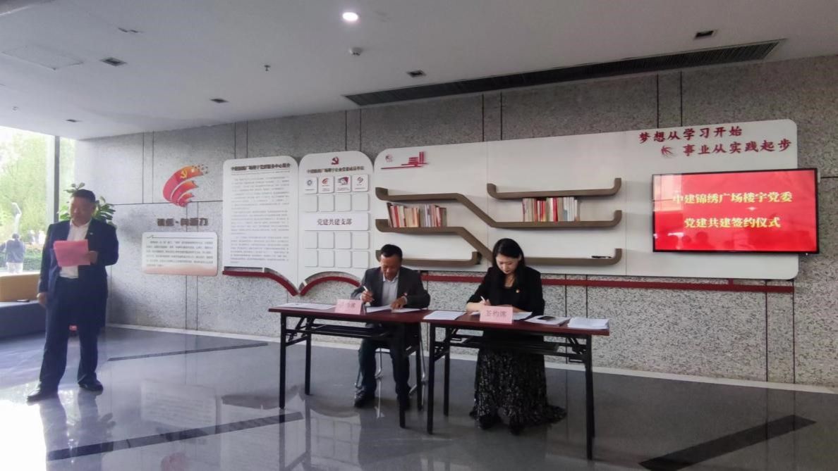 街道党工委负责人详细介绍党群服务中心“锦绣●向新力”党建品牌建设情况,引领出席单位代表参观读书驿站、红色展馆等场所。会后,院(所)党委与中建锦绣广场楼宇党委正式签定党建共建工作协议。