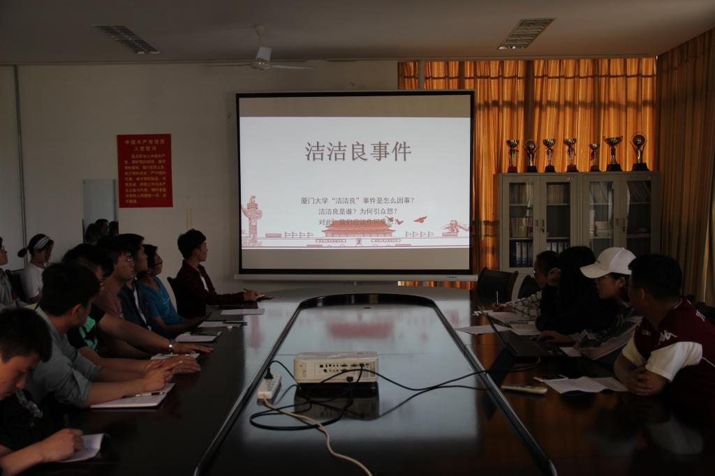 党员刘珂指出“洁洁良”入党动机不纯,为了能够实现自我利益最大化,伪装成敬党爱国的先锋战士,欺骗组织,典型的“口言善、身行恶”两面人代表。并倡导同学们深刻反思,坚守底线思维,做合格共产党员。