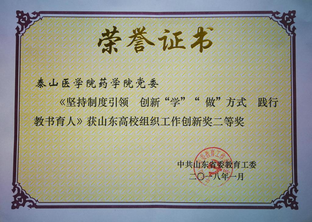 近日,中共山东省委教育工委公布了全省高校组织工作创新奖获奖名单,公司党委的《坚持制度引领,创新“学”“做”方式,践行教书育人》项目获得二等奖。