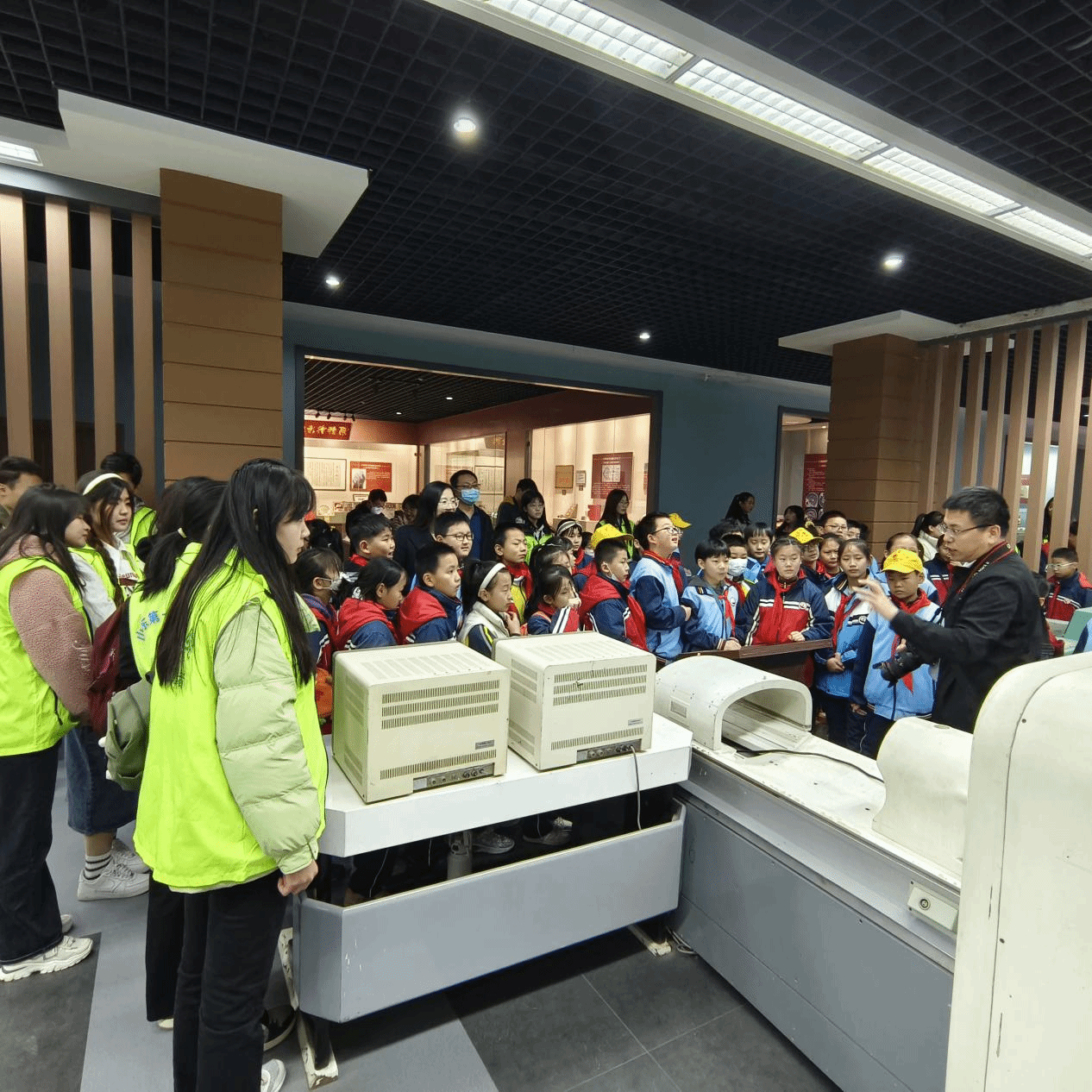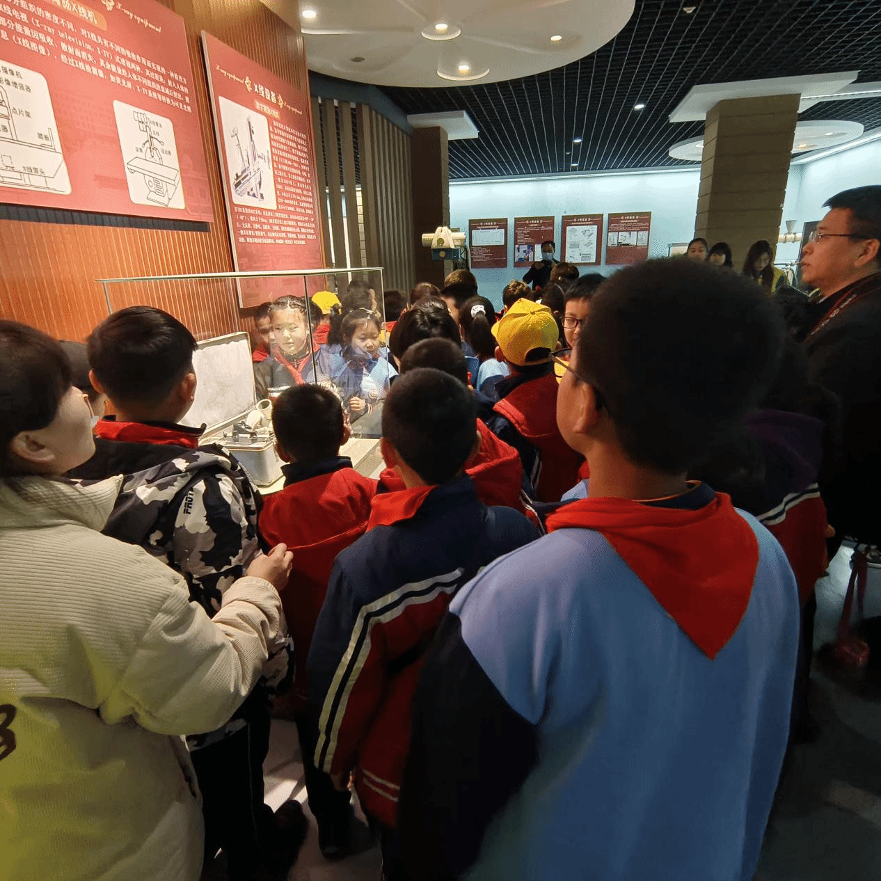 参观的第一站是医学影像博物馆,小员工们通过聆听讲解员的专业解说,了解到了这座医学影像博物馆是全国科普教育基地、全国唯一一座医学影像学领域的专业性博物馆。随后大家在讲解员和志愿者的带领下参观了博物馆内的各个展区,详细了解影像学医疗设备的发展历程,近距离观看中华人民共和国成立后各个时期的影像学设备,,尽情探索着医学影像技术的奥秘。