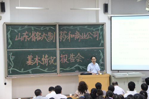 冯强首先结合国内外的宏观经济形式及十八大后我国在医药领域的改革,介绍了当前医药行业发展中存在的问题。随后,冯总经理利用销售额及工业利率等一系列数据为同学们讲解了2013年全国和山东省医药行业的运行情况,特别是通过对东、中、西部的GDP、医药工业运行概况、医药流通情况等三方面进行对比,使同学们对全国和山东省的医药经济情况和医药发展前景有了更加清晰的认识。冯总经理指出,山东省是医药制造大省,而非制造强省,与江苏和浙江相比,我省在药品研发及技术更新等方面仍存在较大差距。最后,冯总经理向同学们介绍了新华、鲁抗、辰欣等山东省十余家医药骨干企业及山东省医药企业协会的概况。