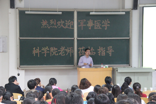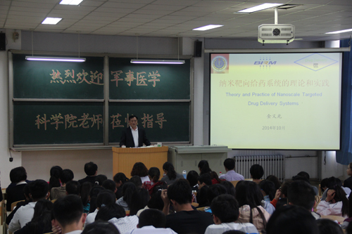 金教授结合自身科研工作,为全院师生做了题为《纳米靶向给药系统的理论与实践》的学术报告,详细介绍了纳米制剂、靶向制剂的特点、分类以及广阔的发展前景,重点阐述了“自组装药物传递系统(SADDS) ”。金教授的报告深入浅出、内容丰富,使公司师生受益匪浅。报告结束后,金教授又向同学们介绍了军事医学科公司历年硕士研究生招生和培养情况,并概括地介绍了军事医学科公司药剂学研究生的招生程序和注意事项。